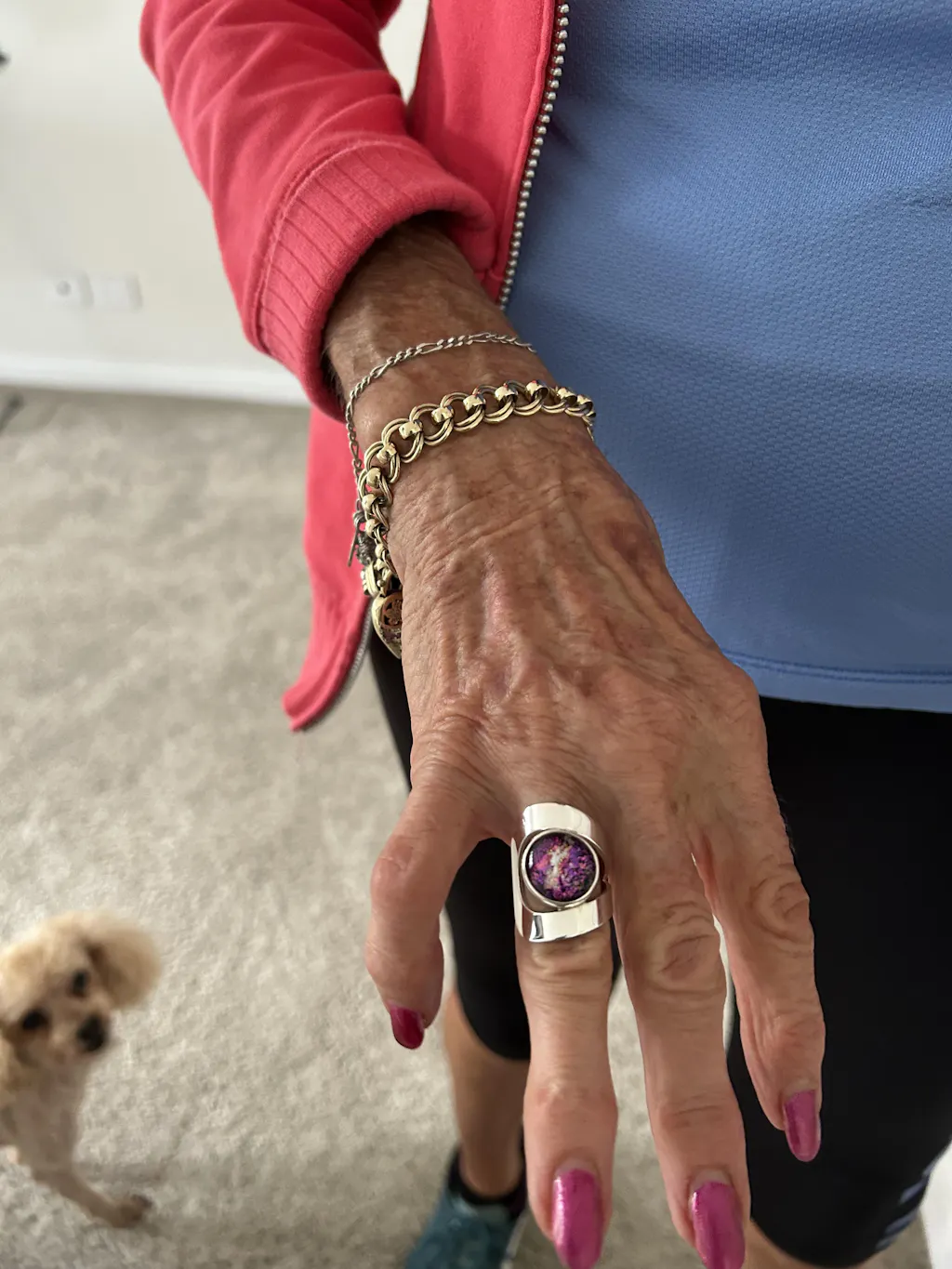 Love my ring. Bought it as a present to myself after following Cindy online for years. I never take it off