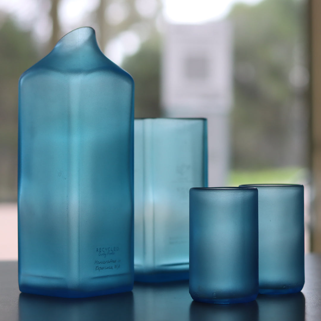Introducing our premier Eco-Luxe Recycled Glass Drinkware Collection, meticulously birthed from the sustainable vision of Cindy Poole Glass Artist (CPGA). Crafted with care, this premier collection not only embraces the rich history and personal narratives behind each repurposed bottle but also showcases exceptional craftsmanship committed to environmental stewardship.