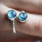 Delicate yet distinctive, the Meg’s Double Twist Ring features two luminous glass art gems set within a finely detailed sterling silver twist band. This intricate design combines masterful craftsmanship with natural inspiration, offering a refined silhouette infused with coastal character.