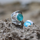 Each ring is individually handcrafted by Cindy Poole Glass Artist, with every gem selected for its unique colour properties and design. No two are alike — each is a one-of-a-kind expression of coastal beauty.